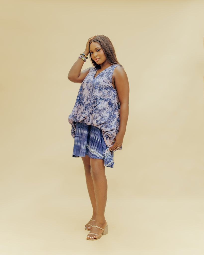 Stun in this Blue Adire bubble shift, made with 2 different Adire fabrics combined to give it a unique look.