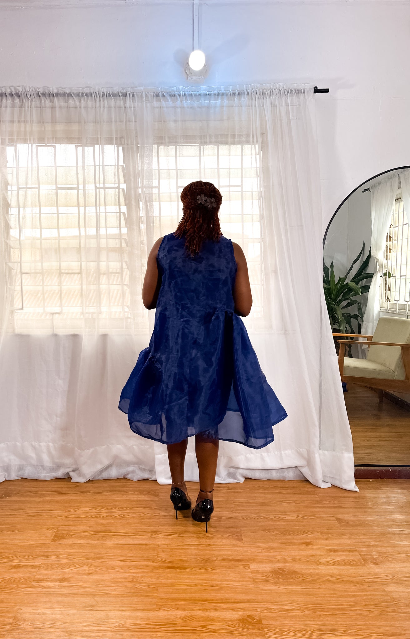 Has gathers on both sides, the waist and the hem, giving it a stylish edge