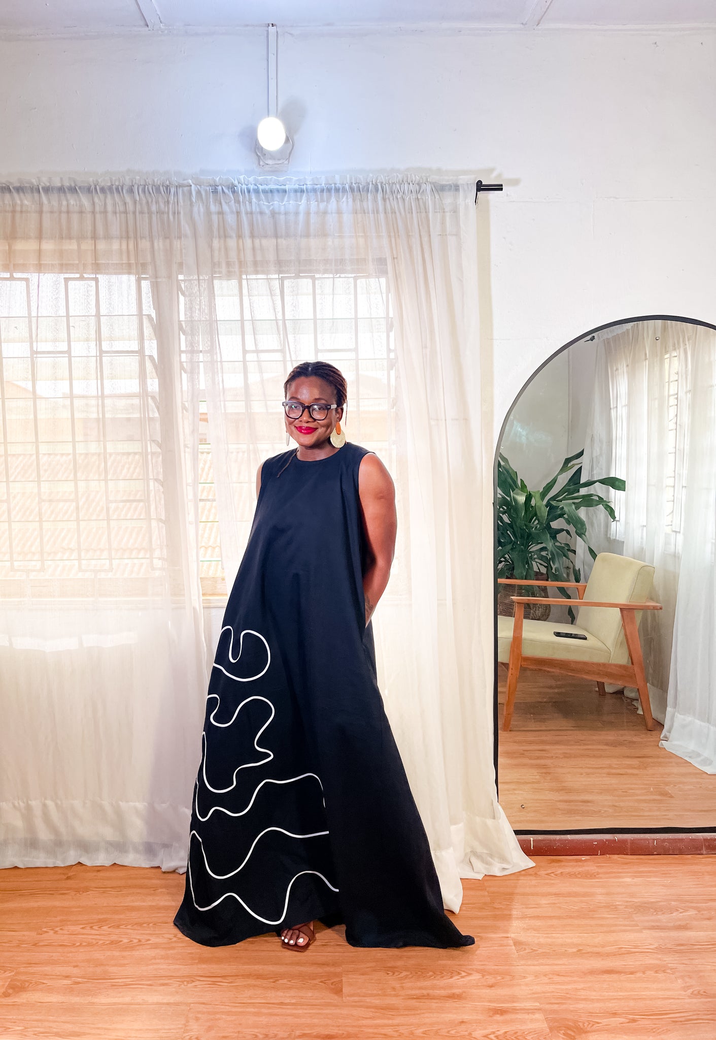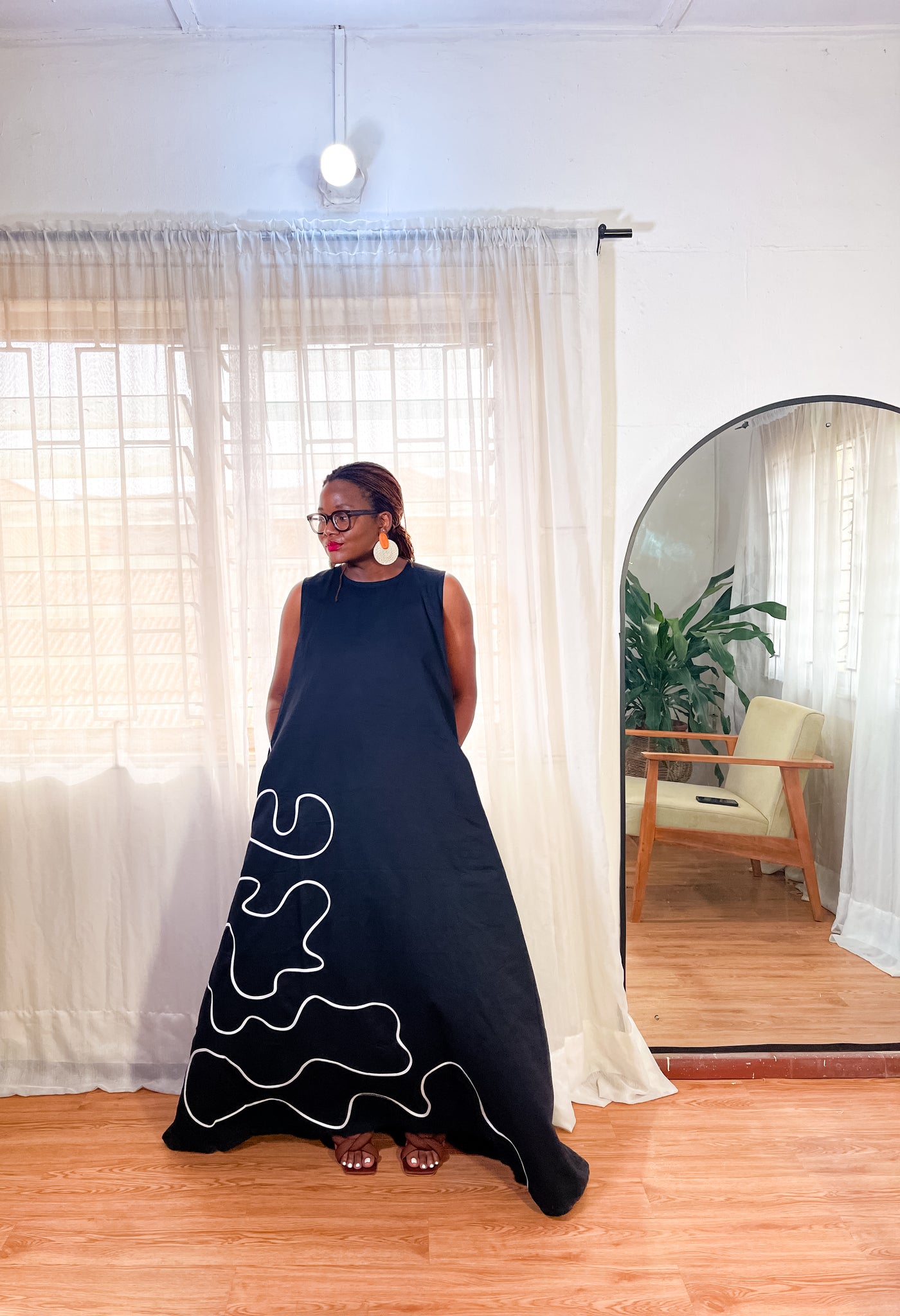 The squiggle dress is a long maxi A-line dress with pockets